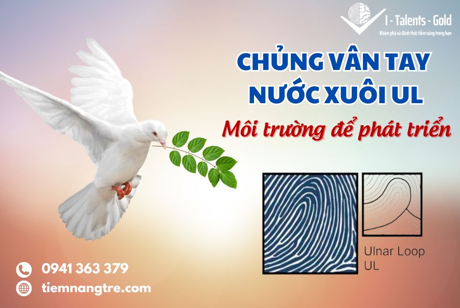 Chủng vân tay nước xuôi UL (Ulnar Loop) được gọi là những “chú bồ câu hiền hòa” vì tính cách nhẹ nhàng và linh động. Hình dáng vân tay UL có một tâm và 1 delta