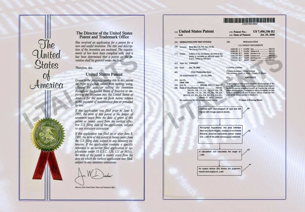 Phần mềm sinh trắc vân tay của Giáo Sư Linh được Mỹ cấp bằng sáng chế.